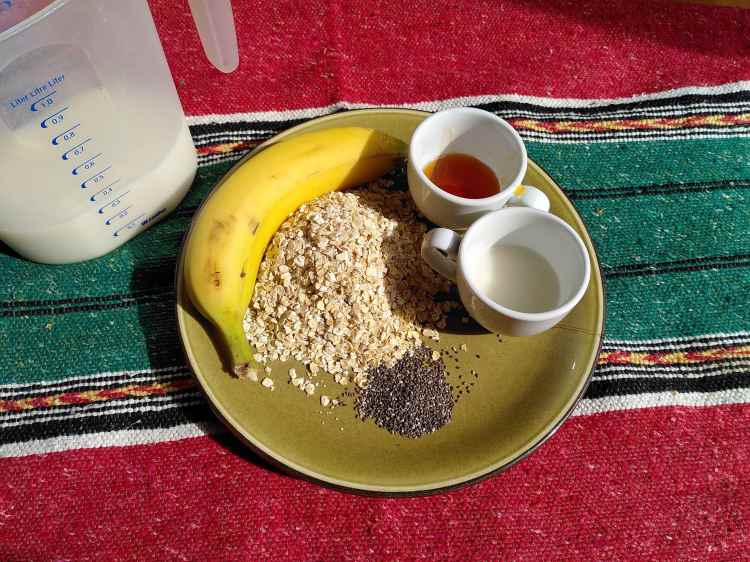 - 350 ml Hafermilch (das sind etwa 50g Haferflocken)