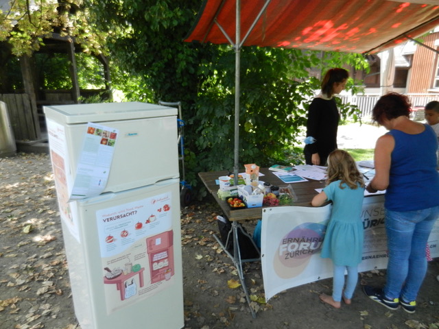 Am Quartieranlass vom 18. August beim GZ Schindlergut zusammen mit dem Ernährungsforum Zürich standen Kühlschrank & Glücksrad im Zentrum des Interesses. Kinder & Eltern konnten den grossen Kühlschrank einräumen oder das Kühlschrankspiel lösen.