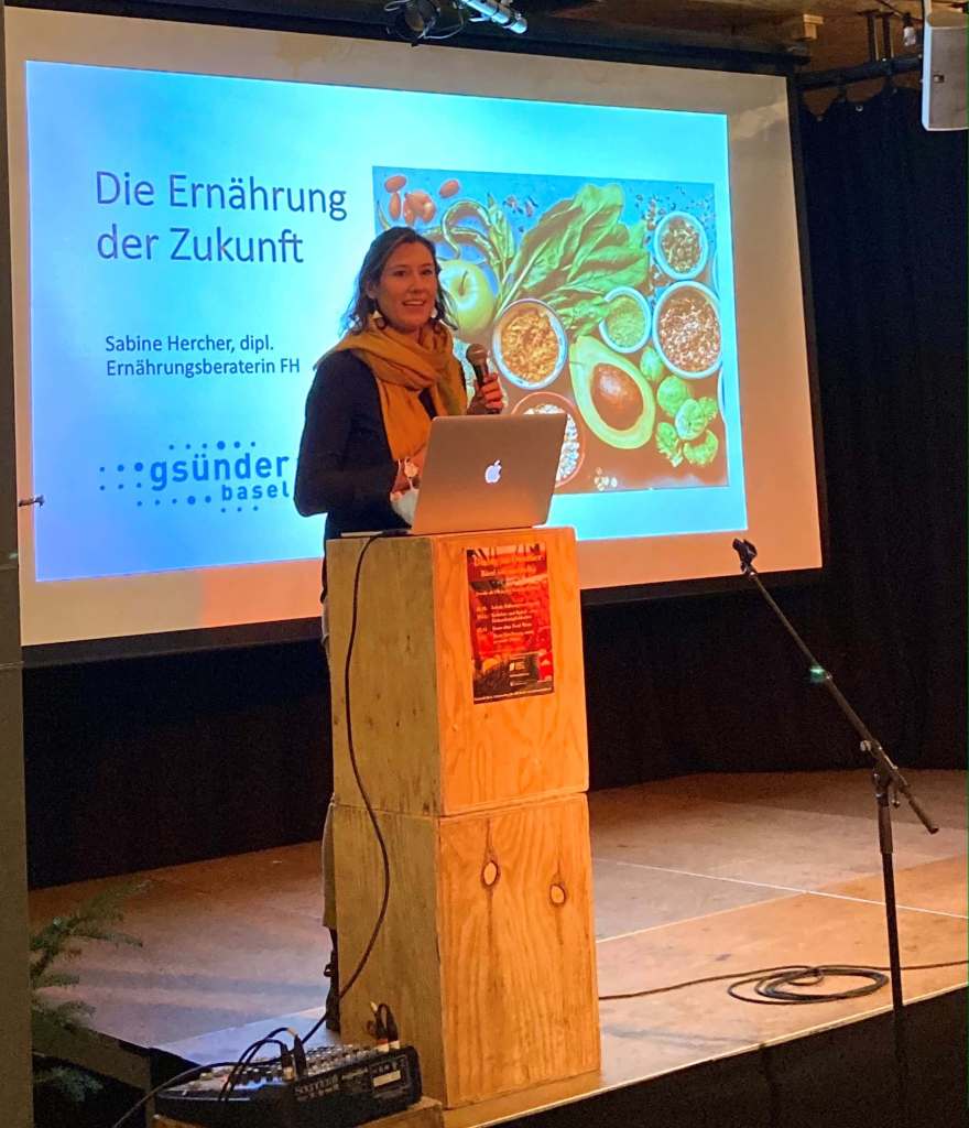 Sabine Hercher von Gsünder Basel hat spannende Menüvorschläge nach den Richtlinien der Planetary Health Diet vorgestellt, die 20 g pflanzenbasierter Eiweisse zur Verfügung stellen. Ab dieser Menge arbeitet die Protein-Biosynthese des Körpers besonders gut und erlaubt Eiweisse effizient aufzunehmen und umzubauen.