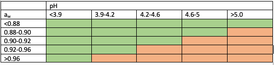 Der aw-Wert steht für die Wasseraktivität im Lebensmittel und beschreibt die Menge an flüssigem Wasser, das im Lebensmittel frei zur Verfügung steht. Je mehr freies Wasser, desto höher die Feuchtigkeit und desto besser können Mikroben sich im Lebensmittel festsetzen und vermehren. Eine saftige Frucht hat einen höheren aw-Wert wie trockener Reis[1].