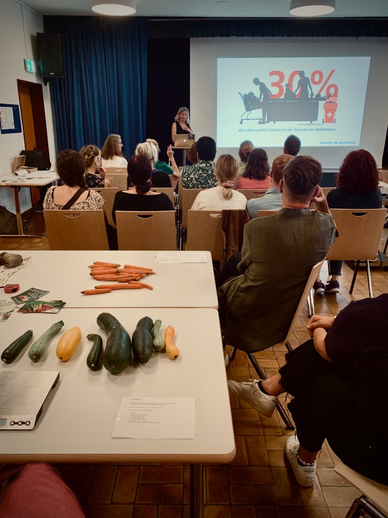 An einem sonnigen Nachmittag im GZ Wollishofen richteten Studierenden des td-Lab ETH Zürich zusammen mit Dialog im Quartier einen Foodsave-Parcours mit Mitmachaktionen für Kinder und Familien mit verschiedenen Posten ein.