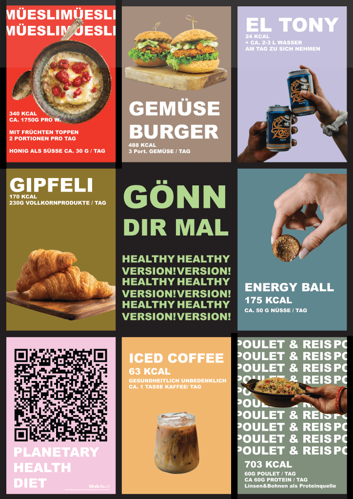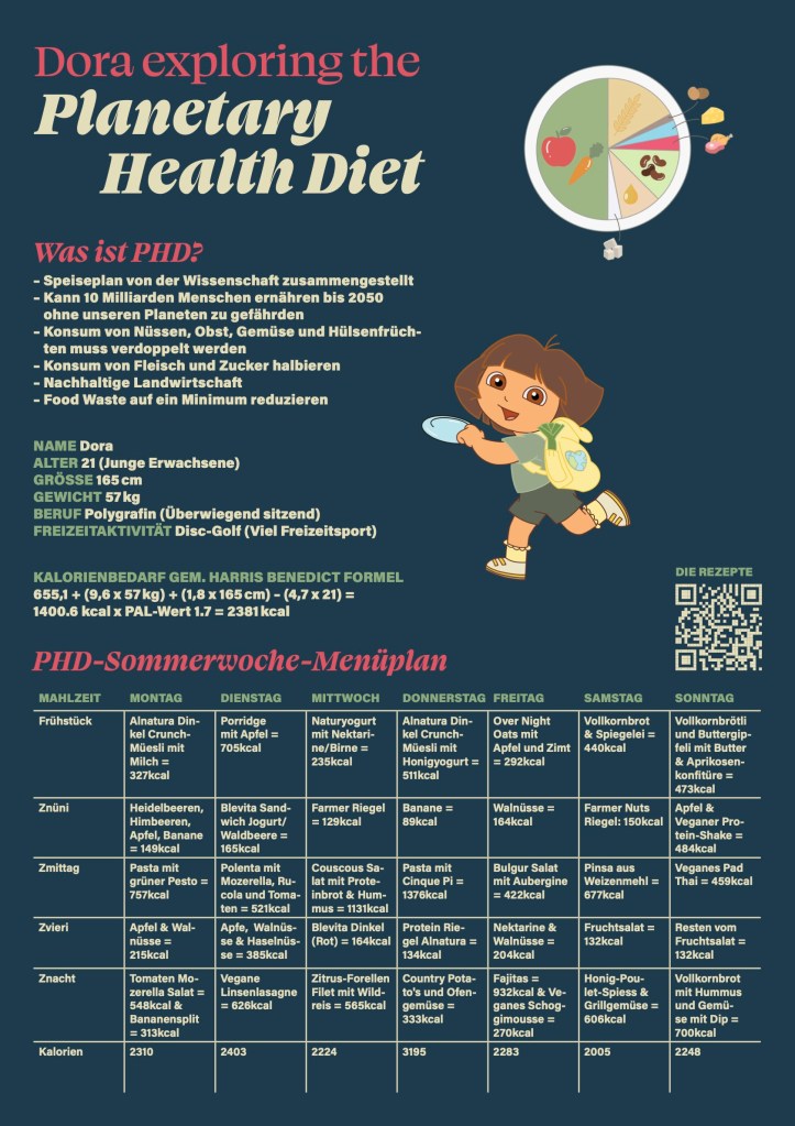 Die Schüler:innen des Berufsbildungszentrum Bau und Gewerbe Luzern (BBZB) haben Wochenpläne als Inspiration für eine Umsetzung der Planetary Health Diet (PHD) in verschiedenen Bevölkerungsgruppen erstellt. Die Poster sind in Zusammenarbeit zwischen dem Zurich-Basel Plant Science Center, ETH Zurich entstanden.