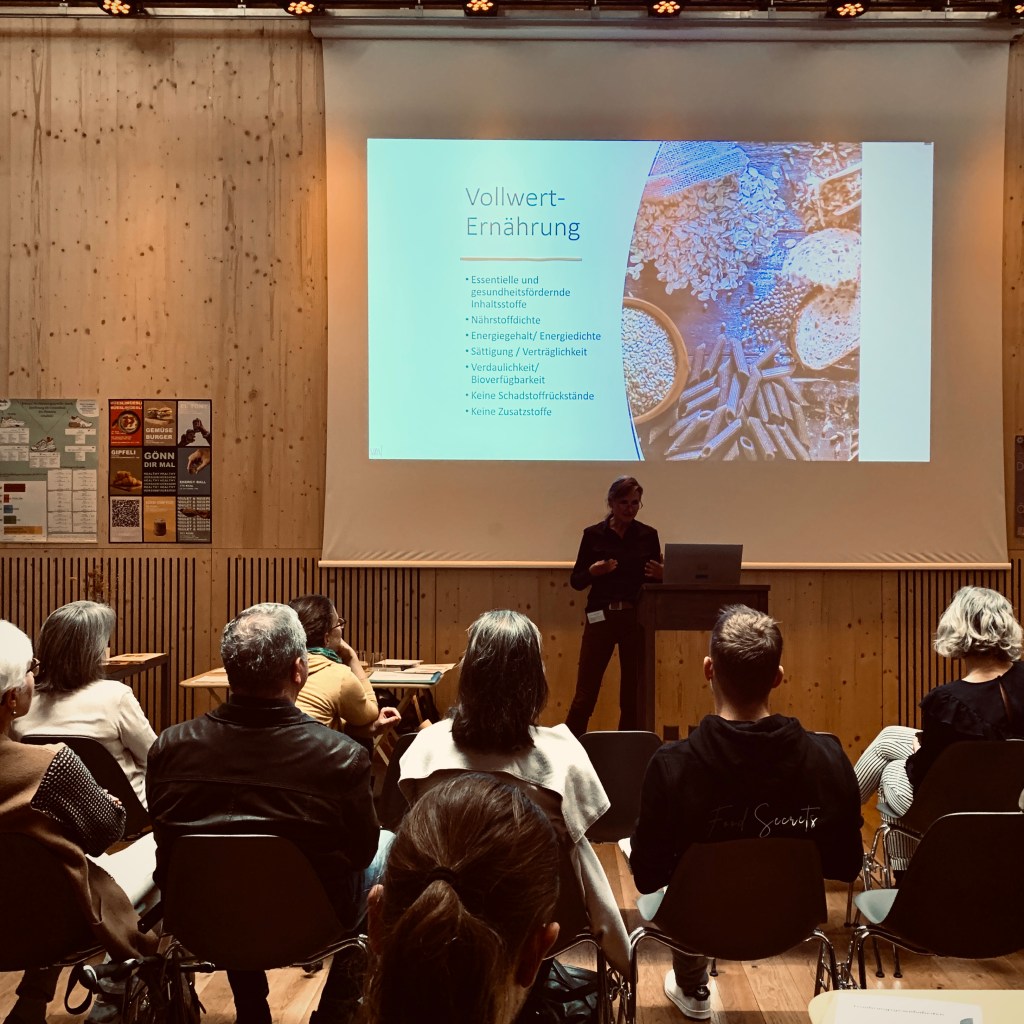 Julia Beck – Ernährungsberaterin für kleinen Kindern und Mitarbeiter:in am Kulturhof Hinter Musegg. Julia führt den Hofladen und ist in vielen anderen Bereichen rund um das Thema Nachhaltigkeit engagiert.