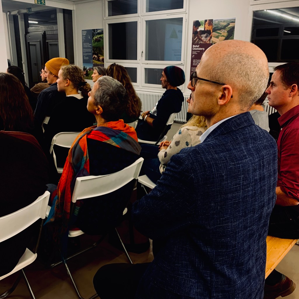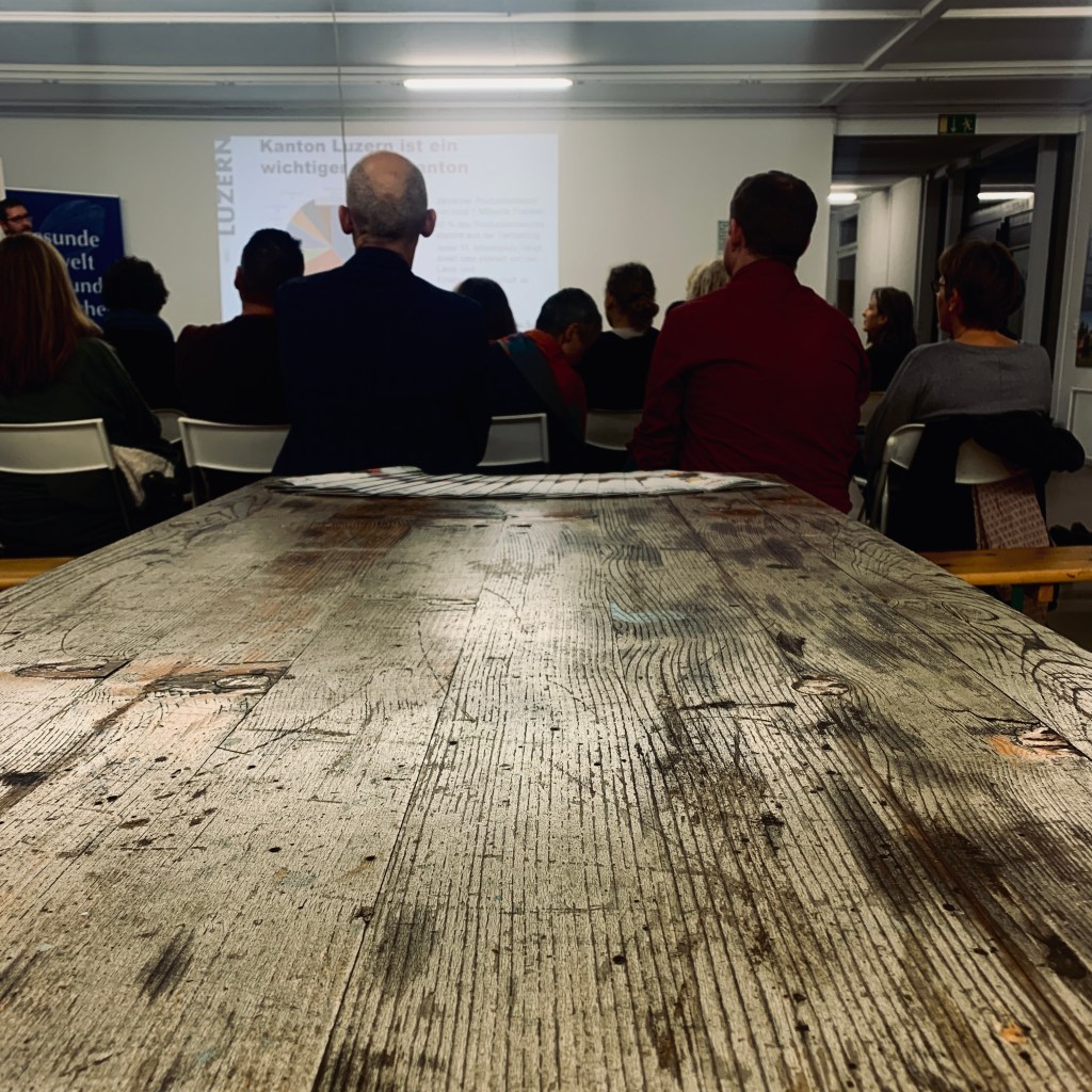 23. November, 2022. In gut besetzter Runde wurde im Kunstpavillon in Luzern über neue Wege diskutiert, um Produzent:innen und Konsument:innen durch digitale Marktplätze oder kollektive Einkaufsmöglichkeiten miteinander zu verbinden.