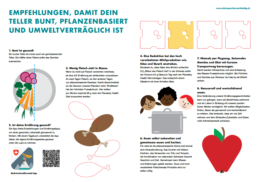 Zurich-Basel Plant Science Center (2022). Nachhaltige Ernährung für den Planeten: Ernährungsgewohnheiten in Quartieren begleiten und verändern. Arbeitsheft 2: Methoden und Interaktionen. Melanie Paschke. Mit Beiträgen von Jeanine Ammann, Matthias Jeker, Karin Spori, Franziska Stössel, Dubravka Vrdoljak: https://doi.org/10.3929/ethz-b-000547601